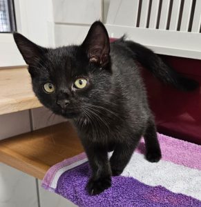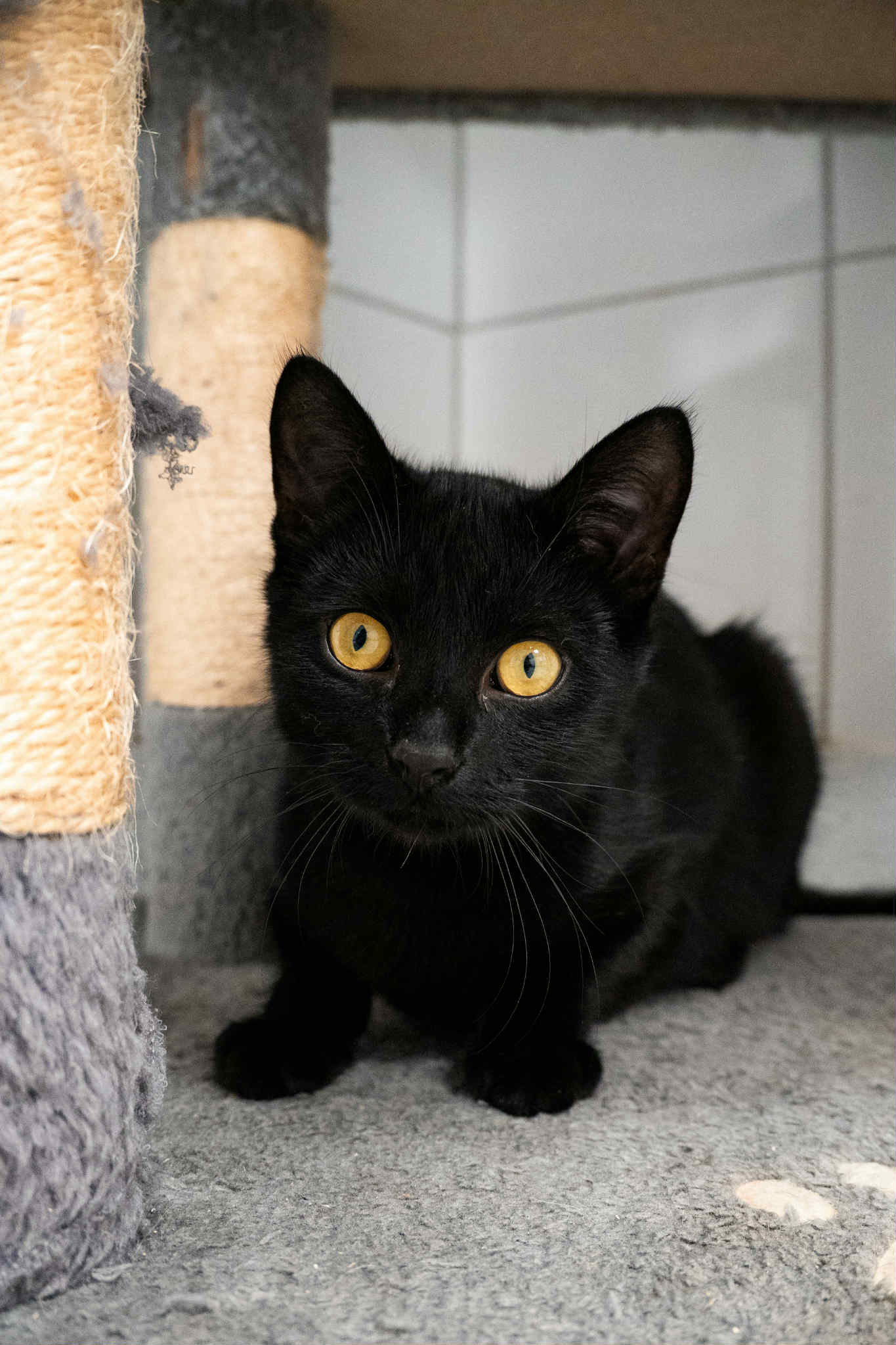 Unser wunderschöner Hektor, geboren im April 2025, kam als Fundkater ins Tierheim. Mit seinem glänzenden schwarzen Fell und den wachen Augen ist er ein echter Hingucker – und ein kleiner Glücksbringer auf vier Pfoten!