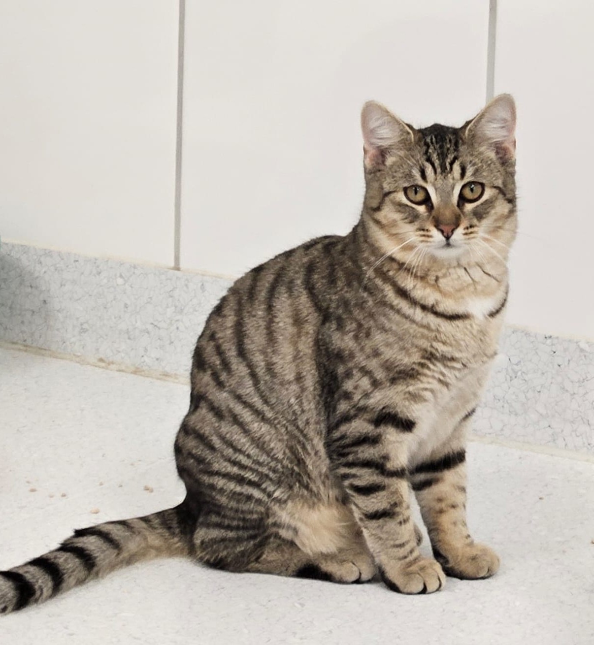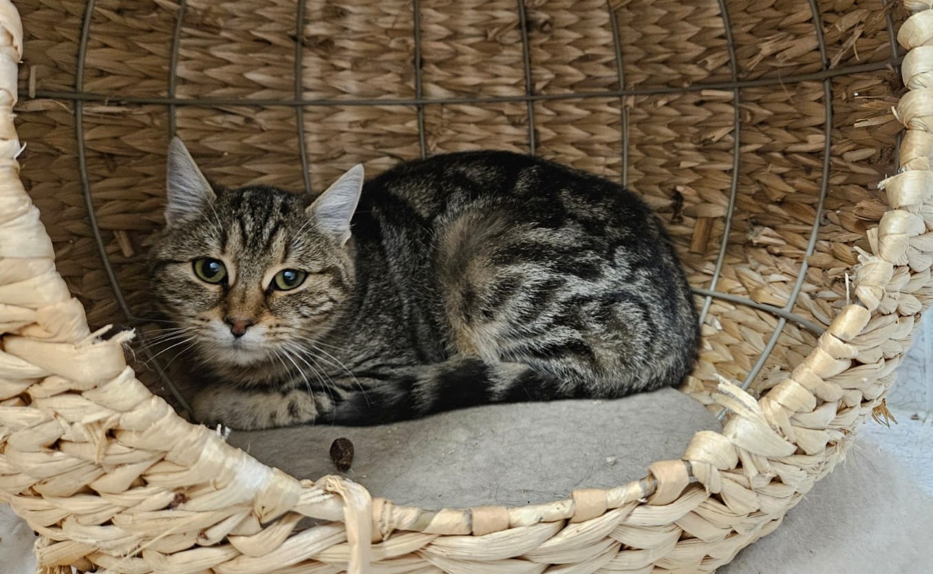 Die hübsche Elena, geboren im März 2025, kam als Fundkatze zu uns ins Tierheim. Ihr wunderschön getigertes Fell und die wachen Augen lassen sofort erkennen, welch besonderes Katzenmädchen sie ist.