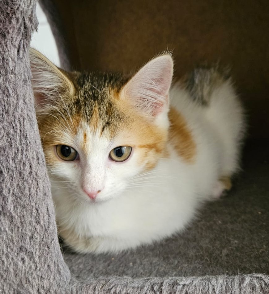 Die hübsche Cecilia, geboren im Juni 2025, kam als Fundkatze zu uns ins Tierheim und hat sich schnell als wahres Sonnenscheinchen entpuppt. Sie ist neugierig, verspielt und sehr zutraulich – eine kleine Entdeckerin, die es liebt, die Welt (oder das Wohnzimmer) mit wachen Augen zu erkunden.