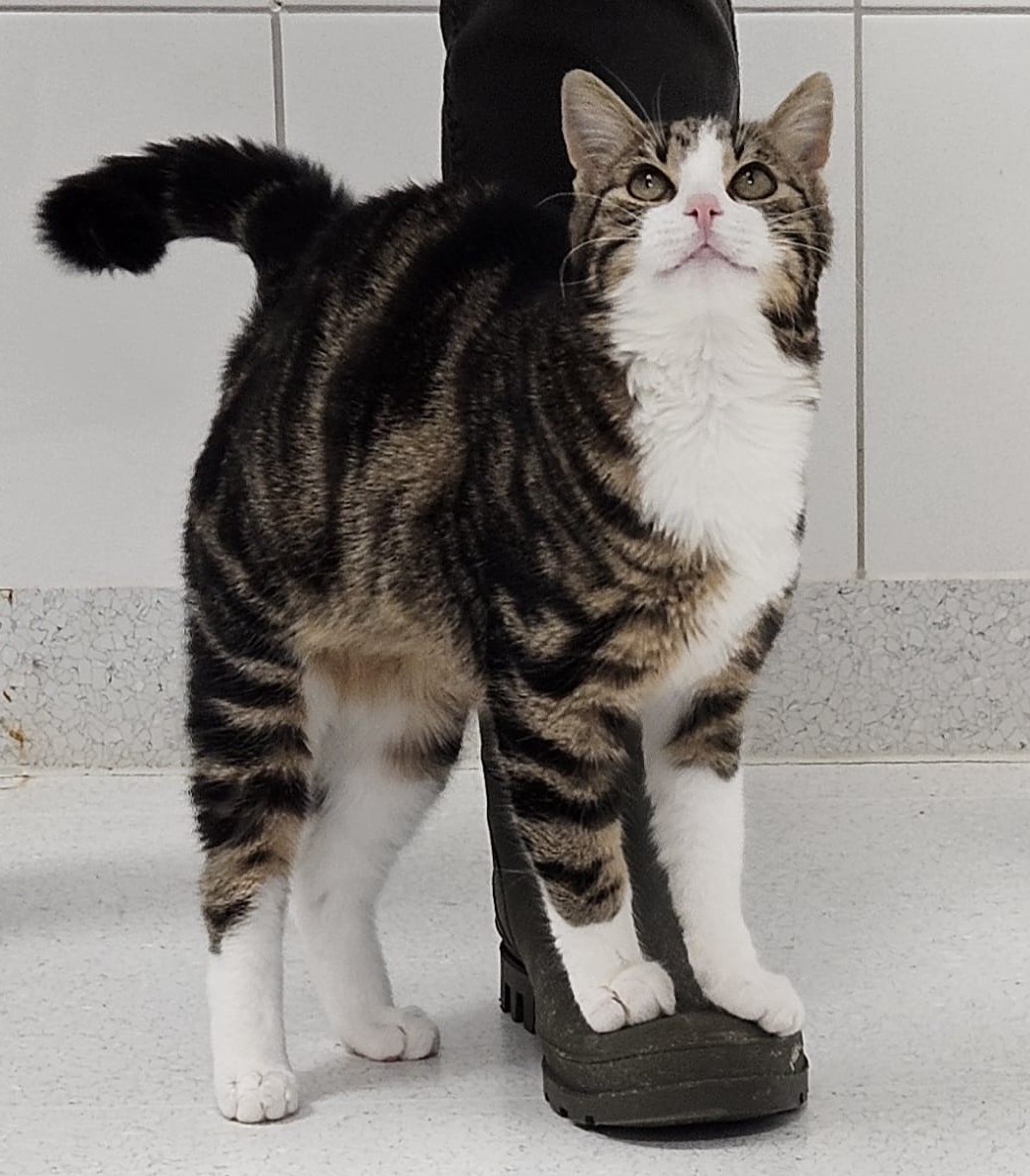 Unser kleiner Ricky (*23. Juli 2025) wurde hier im Tierheim geboren und erkundet seitdem mit viel Neugier seine Welt. Er ist eine Wohnungskatze, die Spielen und Toben einfach über alles liebt.