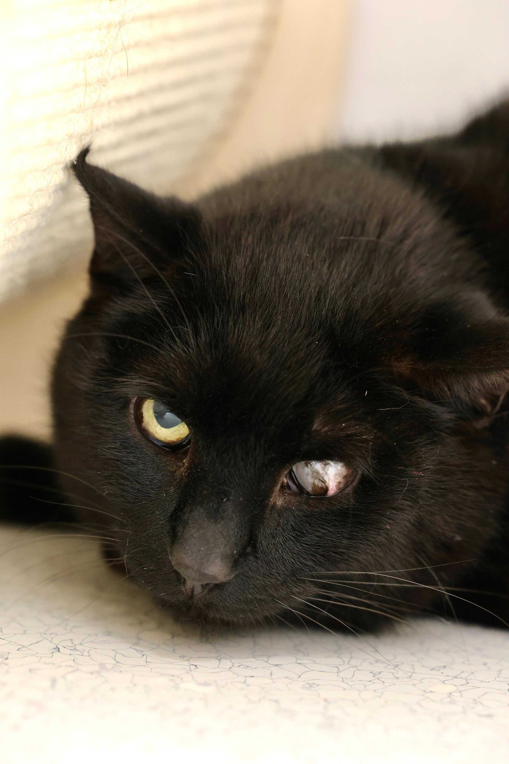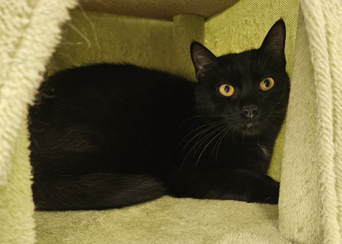 Die hübsche Cleo ist eine schwarze Katzendame, geboren ca. 2024, kastriert und kam als Fundkatze zu uns ins Tierheim. Sie hatte bereits einmal ein Zuhause – wurde jedoch beim Umzug ihrer Menschen leider zurückgelassen. Eine Erfahrung, die Spuren hinterlassen hat.