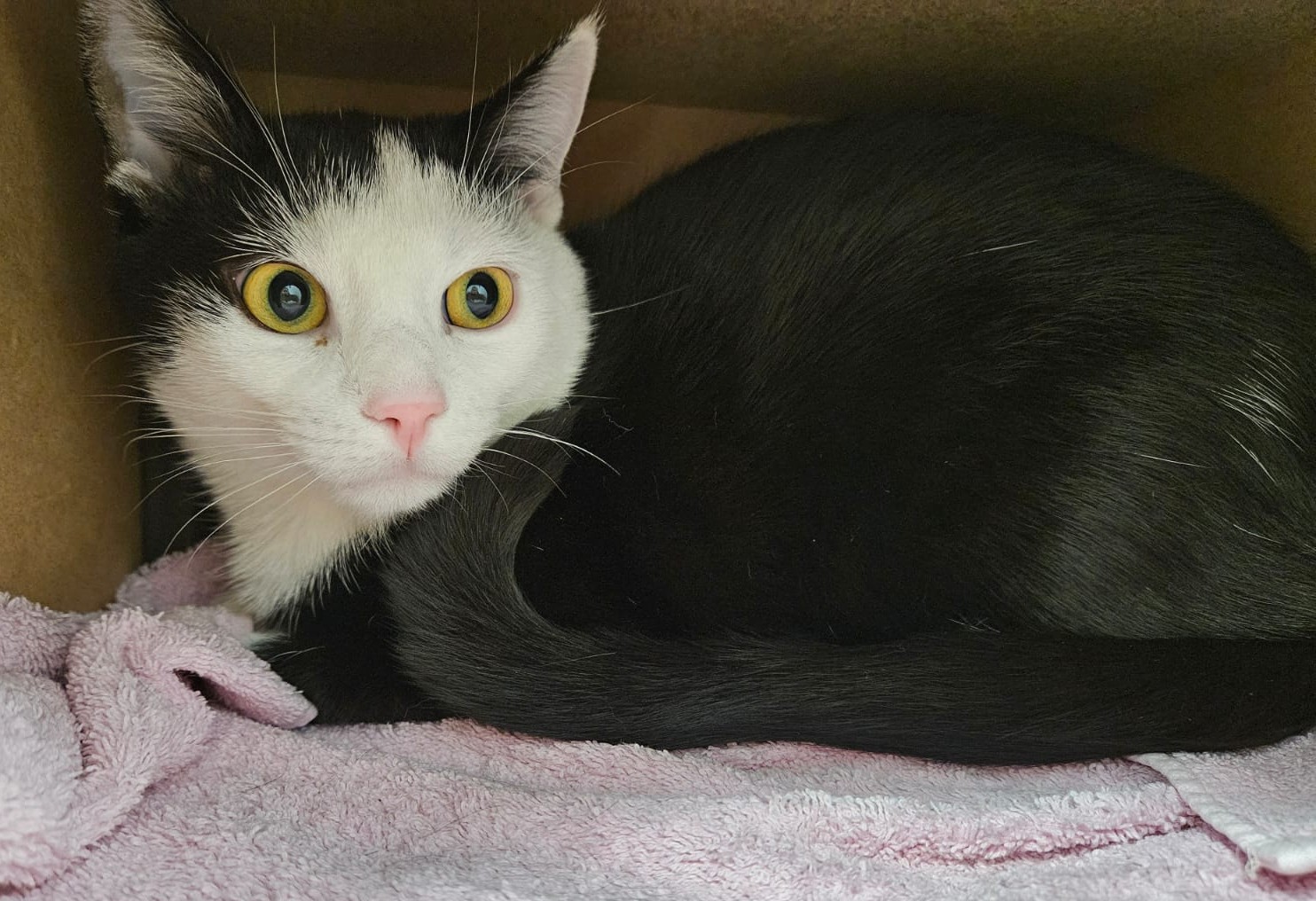 Zorro ist ein hübscher schwarz-weißer EKH-Kater, bereits kastriert, der gemeinsam mit seiner Gefährtin Freya ein liebevolles Zuhause sucht. Die beiden kennen sich, seit sie etwa vier Wochen alt sind, und sind seitdem unzertrennlich – deshalb werden sie nur zusammen vermittelt.