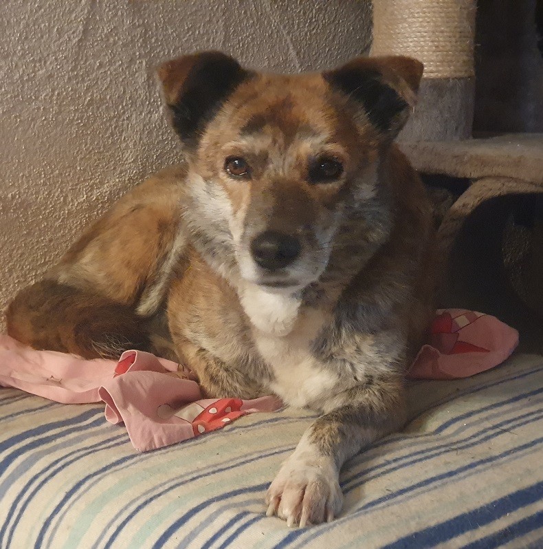 Zurückhaltende freundliche Hündin, die sich gut mit Artgenossen versteht.