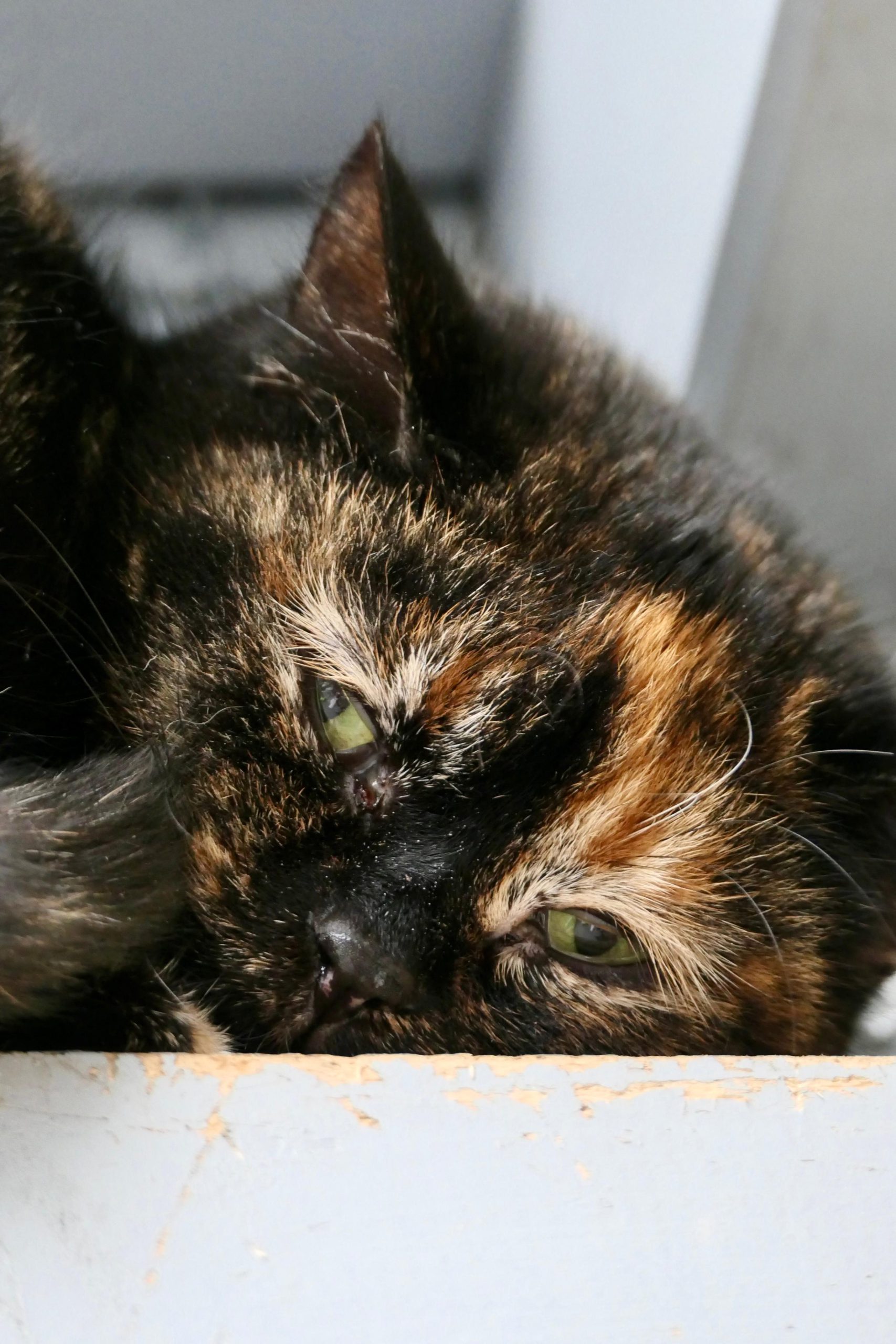 Die hübsche Kessy ist eine Schildpattkatze, kastriert und kam als Fundtier zu uns ins Tierheim. Über ihr bisheriges Leben wissen wir leider nur wenig – eines ist jedoch klar: Kessy hatte bislang kaum bis keinen Kontakt zu Menschen.