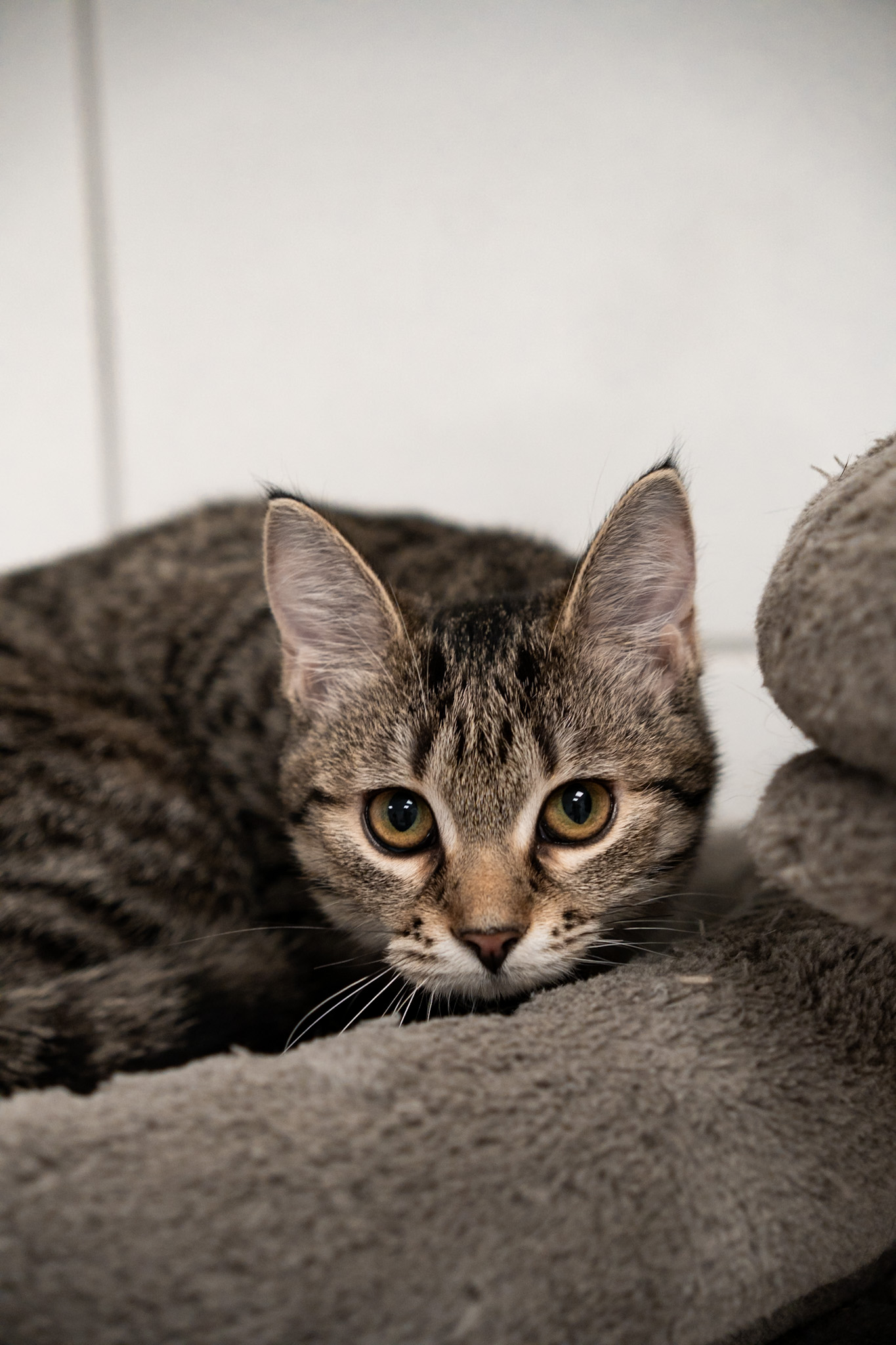 Unsere hübsche Marie, geboren im Juni 2025, kam als Fundkätzchen zu uns ins Tierheim. Anfangs ist sie noch etwas zurückhaltend und vorsichtig, doch sobald sie merkt, dass man es gut mit ihr meint, blüht sie richtig auf: neugierig, verspielt und voller Lebensfreude.