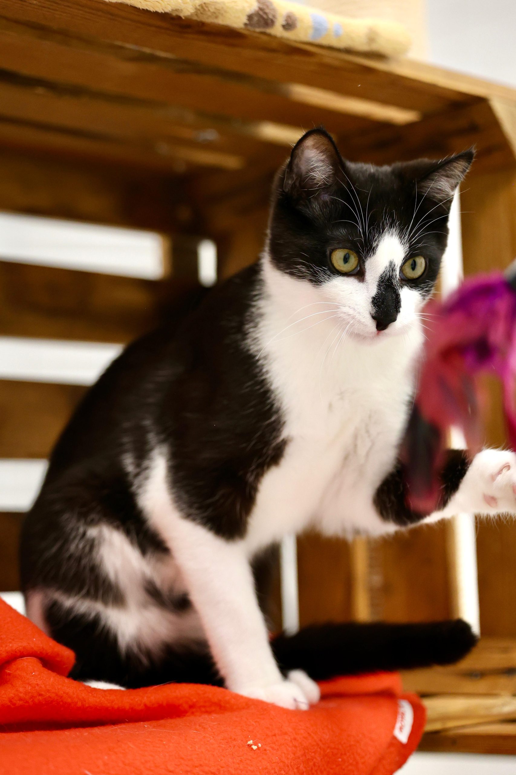 Zorro ist ein hübscher schwarz-weißer EKH-Kater, bereits kastriert, der gemeinsam mit seiner Gefährtin Freya ein liebevolles Zuhause sucht. Die beiden kennen sich, seit sie etwa vier Wochen alt sind, und sind seitdem unzertrennlich – deshalb werden sie nur zusammen vermittelt.